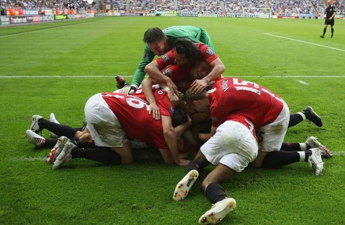 Dieses Ergebnis interessiert in Wigan als der Schlusspfiff ertönt aber schon gar keinen mehr. United spielt die Zeit mit dem 2-Tore-Puffer problemlos herunter und feiert anschließend entkräftet aber ausgelassen auf dem Rasen!