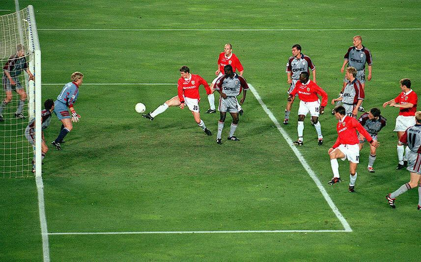 Die United-Fans, über 50 Tausend an der Zahl und durch den Ausgleichstreffer euphorisiert, machen gehörig Lärm. „Is this their year?“, fragt der Kommentator, fast schon vorahnend. Diesmal kommt Beckhams Flanke deutlich schärfer in Richtung Strafraum. Sheringham verlängert gekonnt und der „Baby Faced Assassin“, fährt instinktiv den Fuß raus.