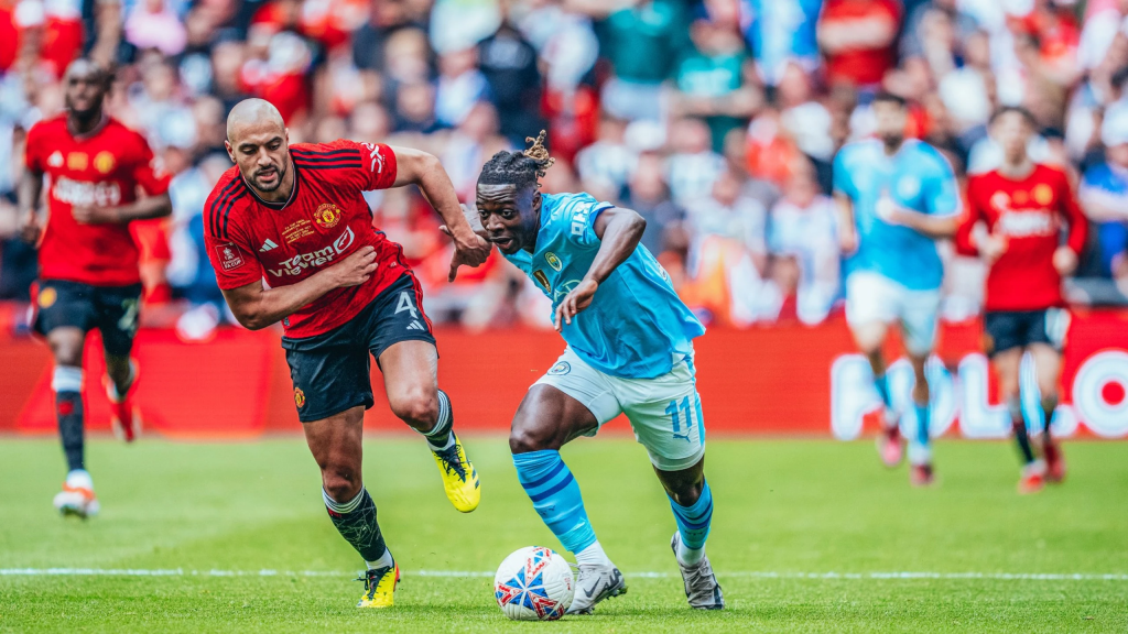 United musste leiden und kämpfen, hatte aber die Uhr auf seiner Seite, da die Minuten vorbeistrichen und sich die Pep-Mannschaft trotz großem Bemühen einfach nicht belohnen konnte. Bis eben zur 87 Minuten, als der aktivste Spieler bei City, Doku, der ein minutenlanges Privatduell gegen Wan-Bissaka auf Weltklasseniveau führte, sich einfach mal ein Herz fasste.