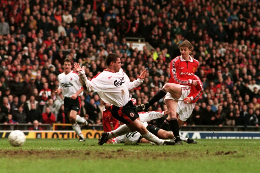 United lieferte sich zu diesem Zeitpunkt einen verbitterten Zweikampf mit Arsenal um die Meisterschaft und stand gegen ein favorisiertes Inter Mailand im Viertelfinale der Königsklasse, tanzte also weiter auf drei Hochzeiten, auch wenn damals wohl keiner so wirklich an das Triple gedacht haben wird. Liverpool hingegen erlebte, ähnlich wie United in den 70ern, eine furchtbare Dekade, blieb bis auf den FA Cup Sieg 1992 ohne Titel und spielte im Kampf um die Meisterschaft Jahr für Jahr kaum eine Rolle. Ende Januar hatten die Reds jedoch die einmalige Gelegenheit United im eigenen Stadion aus dem FA Cup zu werfen und Uniteds minimale Chance auf das Triple endgültig im Keim zu Ersticken. So kam es dann auch, als kurz vor Ende der regulären Spielzeit Liverpool tatsächlich schmeichelhaft mit 1:0 führte und United Minuten vor dem Aus entfernt war. Glücklicherweise hatte Ferguson in dieser Spielzeit, wie fünf Monate später in der magischen Nacht von Barcelona, das Schicksal auf seiner Seite…und einen Super-Sub auf der Bank.