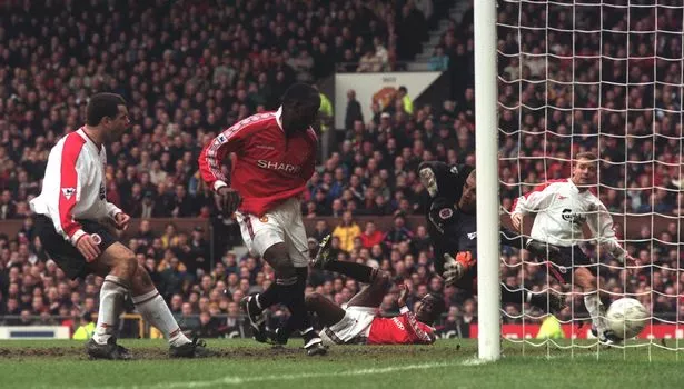 Zehn Minuten vor dem Ende brachte Ferguson seinen einzigen verbliebenen Stürmer, Solskjaer, von der Bank, doch die Minuten verstrichen erbarmungslos und das Tor wollte nicht fallen. Zwei Minuten vor Ende gab es dann nochmal Freistoß: Beckham (wer denn sonst?) flankte gefühlvoll in den Sechzehner, wo Cole per Kopf in den Fünfer verlängerte und seinen kongenialen Partner Yorke fand, der zur kollektiven Erleichterung die Kugel über die Linie drückte und das Old Trafford zum beben brachte.