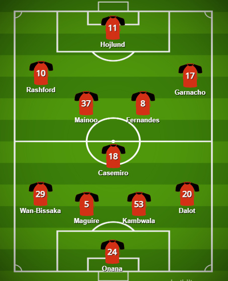 Vor der Partie gibt es gute Neuigkeiten, da Antony und Scott McTominay, die gegen die Cherries fehlten, wieder fit sind und morgen spielen können. Damit hat Ten Hag im Angriff und im Mittelfeld viele Optionen, in der Defensive hingegen, ist die Lage weiter angespannt, da Lisandro Martinez, Victor Lindelöf, Raphael Varane, Luke Shaw und Tyrell Malacia das Halbfinale verpassen werden, wodurch Harry Maguire und der 19jährige Willy Kambwala wieder das Inneverteidigerpaar bilden werden.
