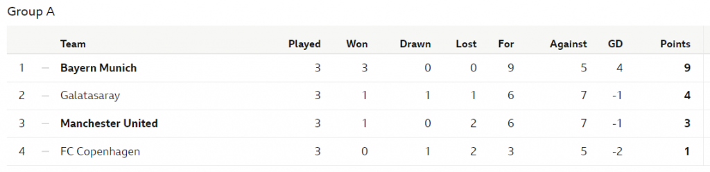 Trotz der zwei Auftaktpleiten ist die Lage aus United-Sicht gar nicht mal so katastrophal. Sollte man morgen gewinnen und Galatasaray gleichzeitig in München nicht gewinnen, hätte man gute Chancen, die Gruppe noch auf Platz 2 zu beenden, da man sich in der Türkei wohl auch ein Remis erlauben könnte. Selbst bei einem Punkt wäre die Lage alles andere als aussichtslos, dafür müsste man aber wohl am nächsten Spieltag in der Türkei gewinnen, um das Achtelfinale zu erreichen. Bei einer Niederlage hätte man dafür nur noch theoretische Chancen auf die nächste Runde und würde gar Gefahr laufen, komplett aus den europäischen Wettbewerben rauszufliegen.