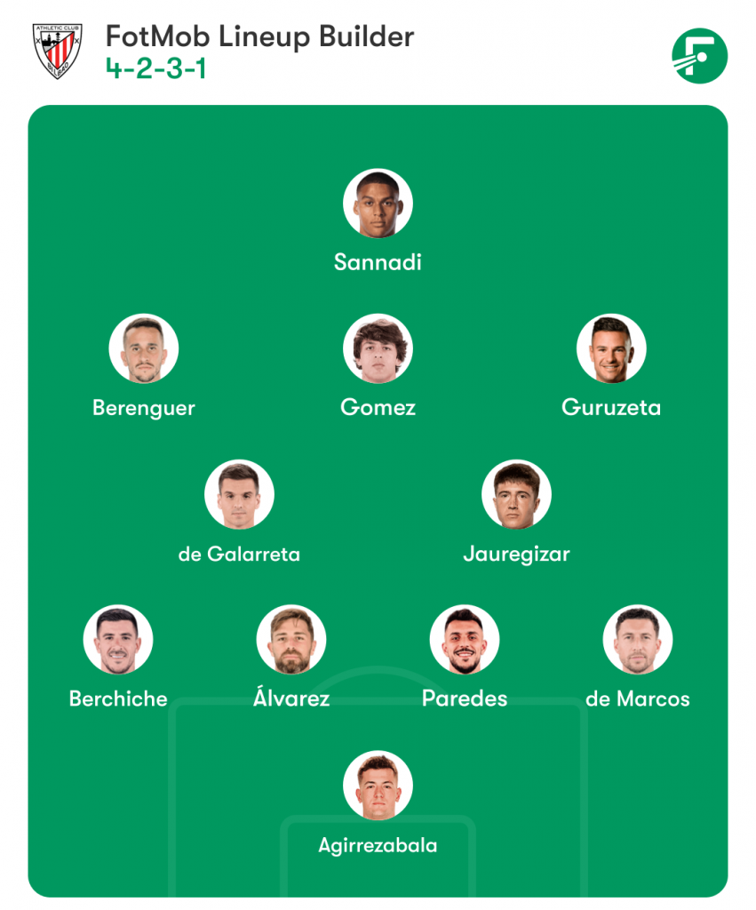 Athletic Club hat am Sonntag beim 0:0 gegen Real Sociedad im baskischen Derby seine Stammspieler geschont, weshalb das Team von Ernesto Valverde morgen ausgeruht im Old Trafford auflaufen wird. Fehlen wird sicher Abwehrchef Vivian, der nach seiner Notbremse im Hinspiel rot-gesperrt fehlt, während Athletic Club mitgeteilt hat, dass Spielmacher und Topscorer Oihan Sancet sowie beide Williams-Brüder morgen nicht Teil des Kaders sein werden, da sie alle vermutlich verletzt sind.