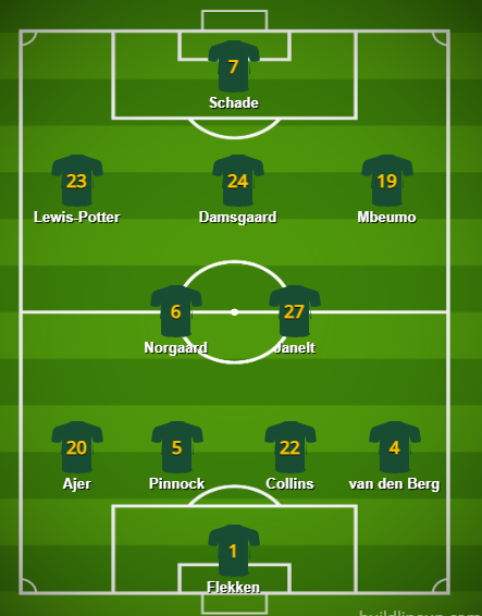 Das Team von Thomas Frank ist äußerst solide in die Saison gestartet und befindet sich momentan auf Platz 10 mit 10 Punkten nach 8 Spielen und das obwohl Topstar Ivan Toney im Sommer nach Saudi Arabien gewechselt ist. Die Bees haben morgen ebenfalls einige Ausfälle zu beklagen und müssen dabei u.a auf Henry, Wissa, Dasilva, Hickey sowie die Neuzugänge Nunes und Thiago verzichten, während Mathias Jensen nach längerer Pause wieder spielen könnte.