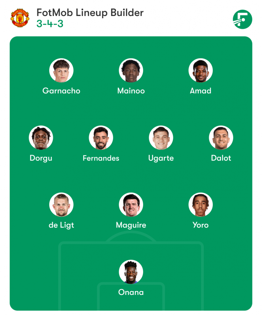 Die beiden Neuzugänge Patrick Dorgu und Ayden Heaven werden beide Teil des Kaders sein und können sich Hoffnungen auf ihr Debüt machen. Beide haben auch deshalb gute Chancen zu beginnen, da sich Lisandro Martinez am Sonntag einen Kreuzbandriss zugezogen hat und den Rest der Saison verpassen wird. Ebenso fehlen werden Luke Shaw, Mason Mount und Jonny Evans, die allesamt noch länger ausfallen, wobei Shaw sich anscheinend bald der Rückkehr nähert.