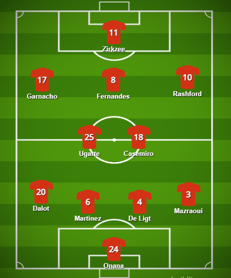 Nach vielen Ausfällen gibt es eine positive Neuigkeit zu verkünden, nämlich, dass Mason Mount wieder ins Training eingestiegen ist und morgen zu einem Einsatz kommen könnte. Neben den üblichen langzeitverletzten wie Mainoo, Yoro, Shaw oder Maguire, steht immer noch ein Fragezeichen über Christian Eriksen, der die letzten beiden Partien verpasst hat. Damit hat Van Nistelrooy nicht allzu viele Optionen, wenn er morgen über seine Startaufstellung entscheidet.
