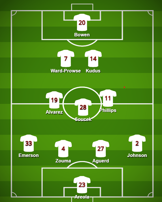 West Ham spielt eine sehr ordentliche Saison und liegt in der Tabelle einen Punkt und einen Rang vor uns auf Platz 6. Morgen müssen die Hammers allerdings auf Spielmacher Lucas Paqueta und Stoßstürmer Michail Antonio verzichten, haben aber gleichzeitig Glück, dass Mohamed Kudus und Nayef Aguerd vom AFCON zurückgekehrt sind, während Vladimir Coufal nach Sperre ebenfalls wieder Teil des Kaders ist. Neu dabei bei den Irons ist Kalvin Philipps, der von den Citizens per Leihe gewechselt ist, Said Benrahma und Pablo Fornals hingegen haben den Osten Londons am Deadline Day verlassen.