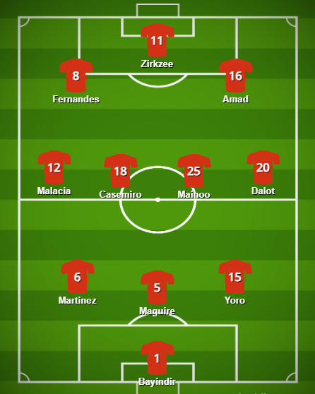 Mason Mount musste im Derby nach wenigen Minuten verletzt ausgewechselt werden und ist morgen fraglich, genauso wie Noussair Mazroui, der sich in derselben Begegnung eine Blessur zugezogen hat. Bis auf Luke Shaw, der noch einige Wochen fehlt, sind aber wohl alle Spieler verfügbar, sofern Ruben Amorim, Marcus Rashford und Alejandro Garnacho wieder in den Kader beruft, nachdem beide beim Derby eine Denkpause bekamen.