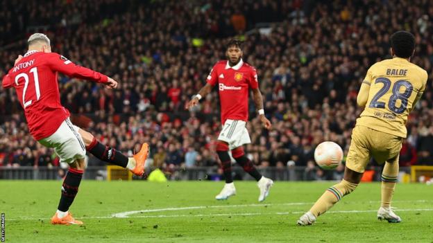 Barca war ferner sichtlich geschockt und überließ den Hausherren immer mehr die Kontrolle, auch weil Ten Hags Wechsel von Weghorst für Antony vollends Früchte trug und die Heimelf deutlich aggressiver und entschlossener zu Werke ging! Und dann so wie es oft kommen musste, war es auch ausgerechnet der blondierte Brasilianer, der den entscheidenden Treffer beisteuerte. Bruno setzte sich abermals physisch stark auf links durch und fand Garnacho, dessen Schuss abgeblockt wurde, dabei jedoch Chaos im Barca-Strafraum verursachte, ehe der Ball vor die Füße von Antony fiel. Unser Neuzugang nahm Maß und traf sehenswert per Innenseite ins lange Eck und brachte dadurch die Stretford End, aber auch das komplette Old Trafford zum Beben und Eskalieren!