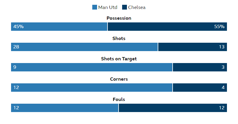 Bruno vergab im ersten Durchgang früh einen Elfmeter, was jedoch nicht zu sehr ins Gewicht fiel, da McTominay kurz darauf die verdiente Führung besorgte, die Palmer vor der Pause aber noch ausgleichen konnte. Ein Halbzeitstand, der trotz United-Dominanz anhand der Chancen verdient war.